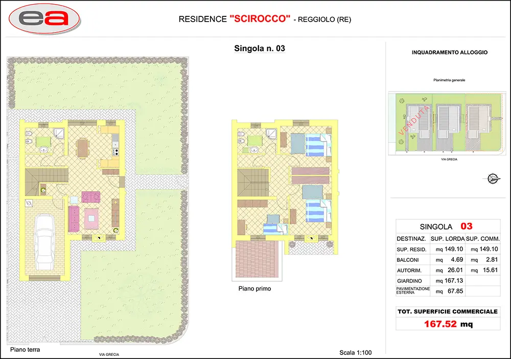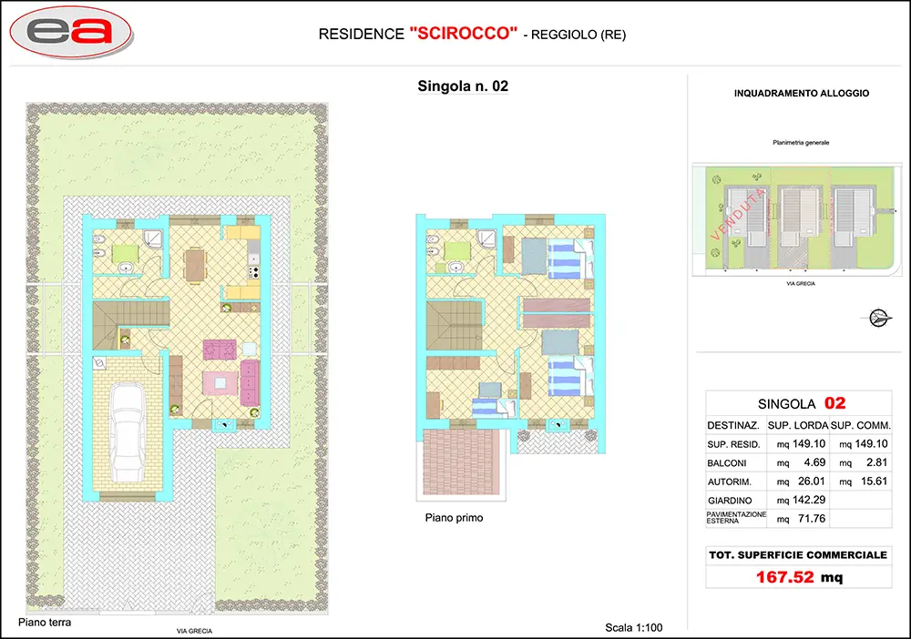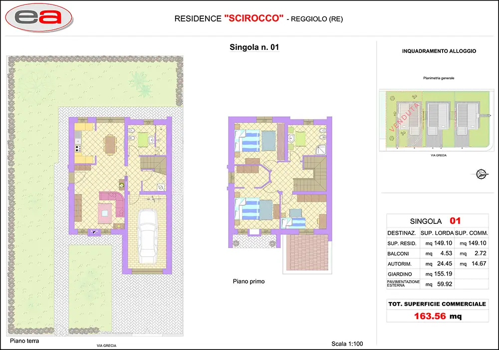 Il residenziale “SCIROCCO” è composto da tre case singole con ingresso pedonale e carraio da Via Grecia.