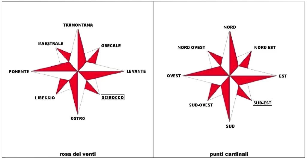 – Sud-Est, dal quale spira il vento di SCIROCCO;